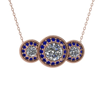 Swarovski ve lab safir 925 ayar rose altın kaplama gümüş kolye (40 cm rose altın rolo zincir)