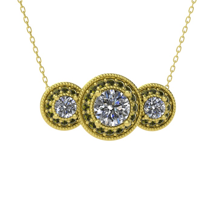 Swarovski ve peridot 925 ayar altın kaplama gümüş kolye (40 cm altın rolo zincir)