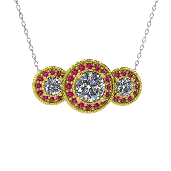 Swarovski ve rodolit garnet 18 ayar altın kolye (40 cm beyaz altın rolo zincir)