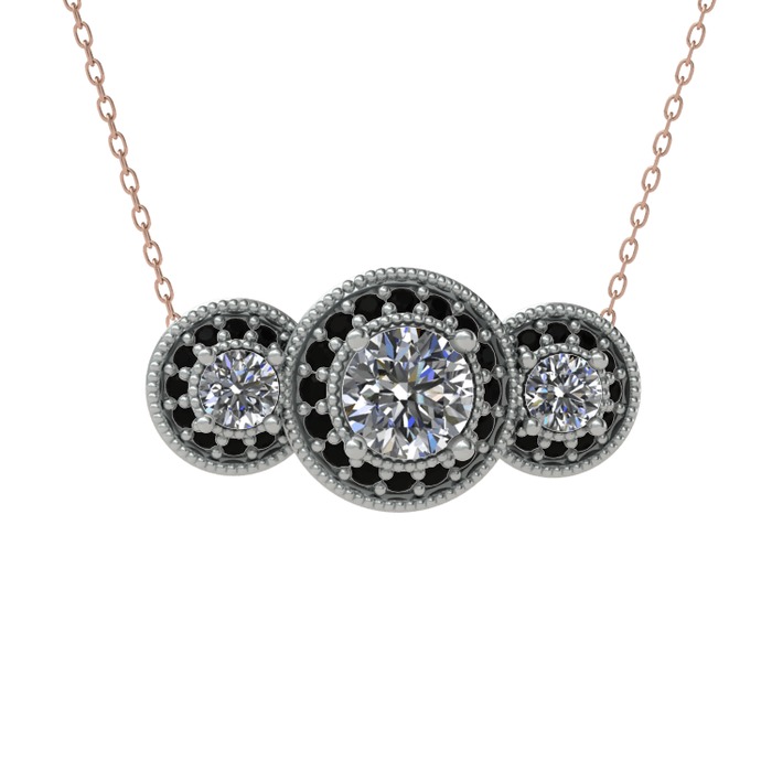 Swarovski ve siyah zirkon 14 ayar beyaz altın kolye (40 cm gümüş rolo zincir)