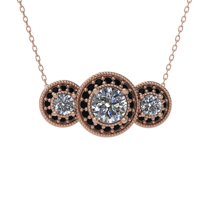 Swarovski ve siyah zirkon 18 ayar rose altın kolye (40 cm rose altın rolo zincir)