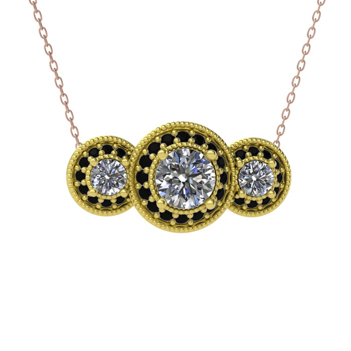 Swarovski ve siyah zirkon 8 ayar altın kolye (40 cm rose altın rolo zincir)