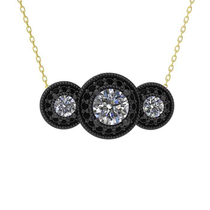 Swarovski ve siyah zirkon 925 ayar siyah rodyum kaplama gümüş kolye (40 cm altın rolo zincir)