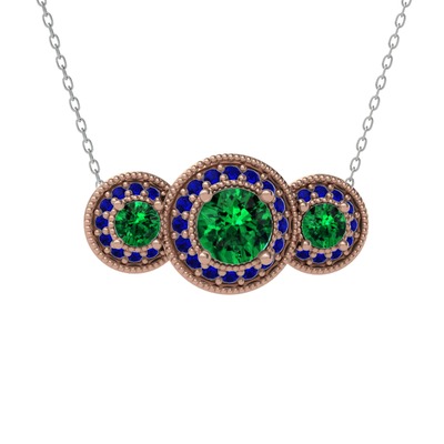 Yeşil kuvars ve lab safir 925 ayar rose altın kaplama gümüş kolye (40 cm beyaz altın rolo zincir)