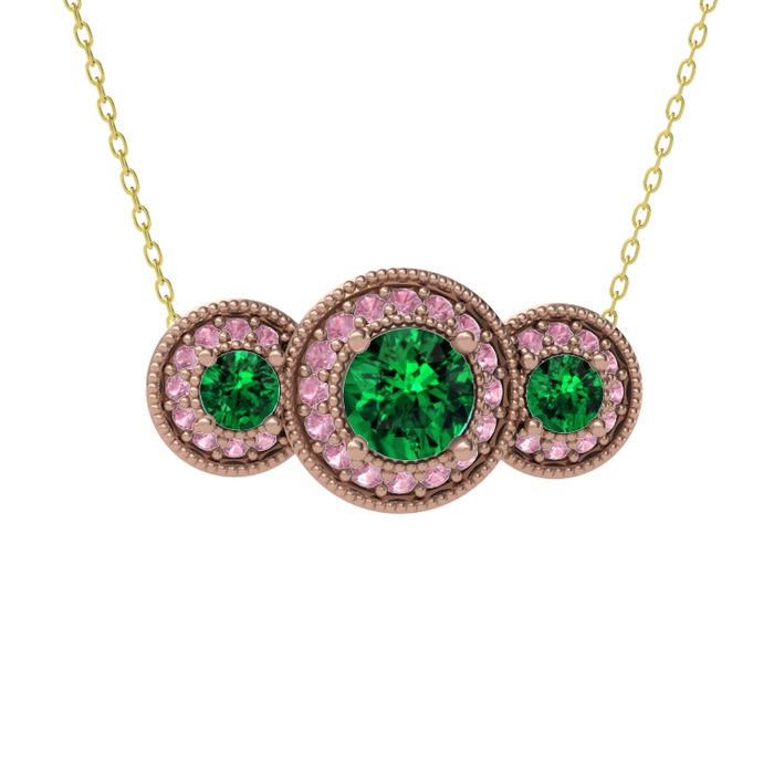 Yeşil kuvars ve pembe kuvars 14 ayar rose altın kolye (40 cm gümüş rolo zincir)
