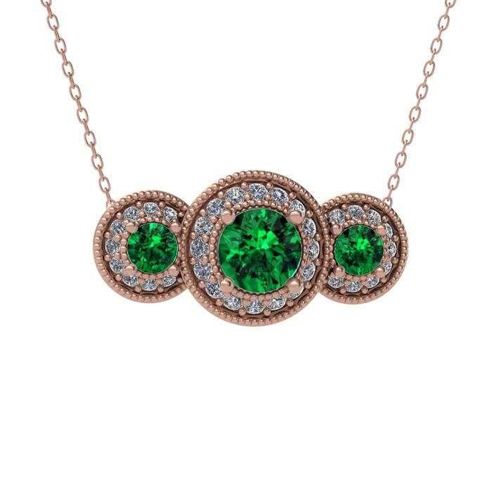 Yeşil kuvars ve pırlanta 14 ayar rose altın kolye (0.462 karat, 40 cm rose altın rolo zincir)