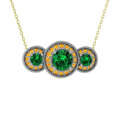 Yeşil kuvars ve sitrin 14 ayar beyaz altın kolye (40 cm gümüş rolo zincir)