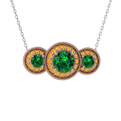 Yeşil kuvars ve sitrin 8 ayar rose altın kolye (40 cm beyaz altın rolo zincir)