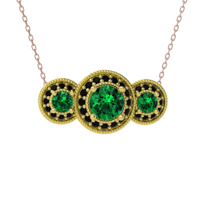Yeşil kuvars ve siyah zirkon 8 ayar altın kolye (40 cm rose altın rolo zincir)