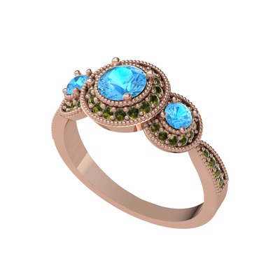 Akuamarin ve peridot 925 ayar rose altın kaplama gümüş yüzük