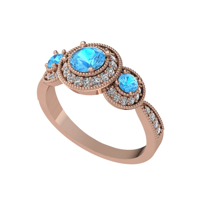 Akuamarin ve swarovski 14 ayar rose altın yüzük