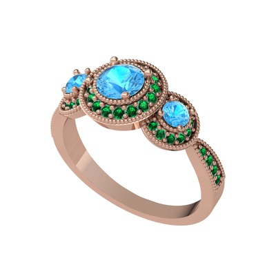 Akuamarin ve yeşil kuvars 18 ayar rose altın yüzük