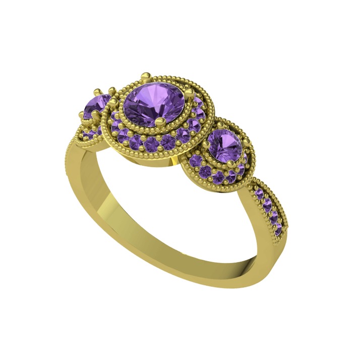 Ametist 925 ayar altın kaplama gümüş yüzük