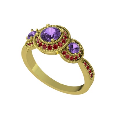 Ametist ve garnet 14 ayar altın yüzük