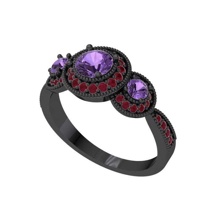Ametist ve kök yakut 925 ayar siyah rodyum kaplama gümüş yüzük