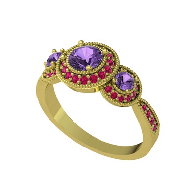 Ametist ve rodolit garnet 925 ayar altın kaplama gümüş yüzük