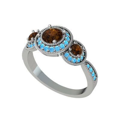 Dumanlı kuvars ve akuamarin 925 ayar gümüş yüzük