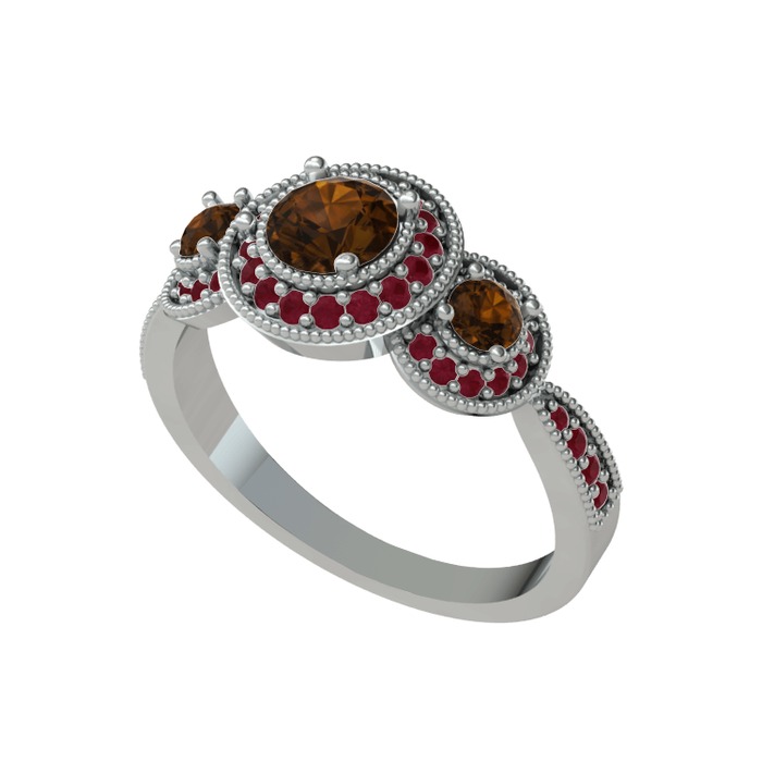 Dumanlı kuvars ve kök yakut 14 ayar beyaz altın yüzük