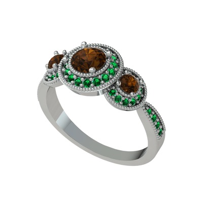 Dumanlı kuvars ve yeşil kuvars 18 ayar beyaz altın yüzük