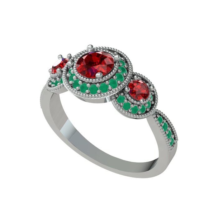 Garnet ve kök zümrüt 8 ayar beyaz altın yüzük