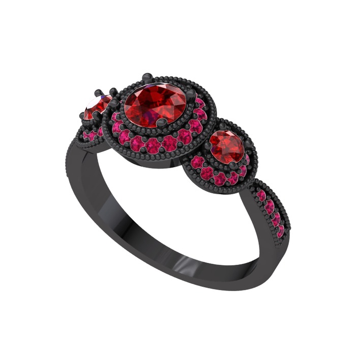 Garnet ve rodolit garnet 925 ayar siyah rodyum kaplama gümüş yüzük