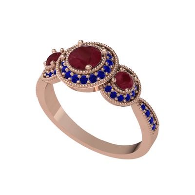 Kök yakut ve lab safir 8 ayar rose altın yüzük