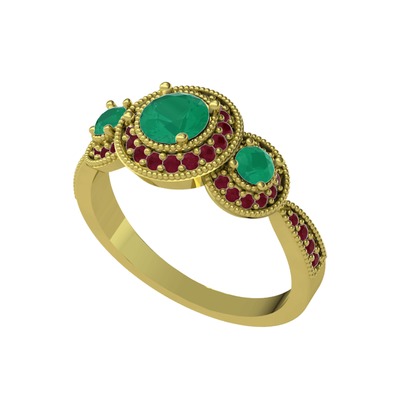 Kök zümrüt ve kök yakut 925 ayar altın kaplama gümüş yüzük