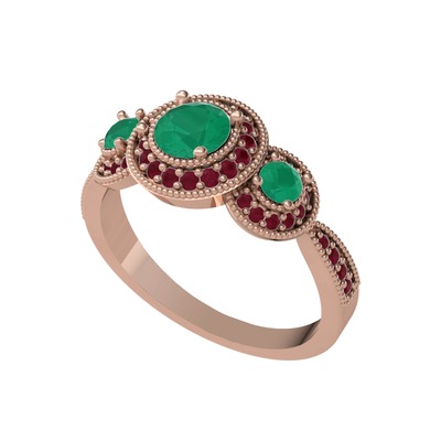 Kök zümrüt ve kök yakut 925 ayar rose altın kaplama gümüş yüzük