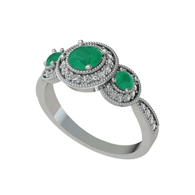 Kök zümrüt ve pırlanta 14 ayar beyaz altın yüzük (0.462 karat)
