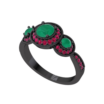 Kök zümrüt ve rodolit garnet 925 ayar siyah rodyum kaplama gümüş yüzük