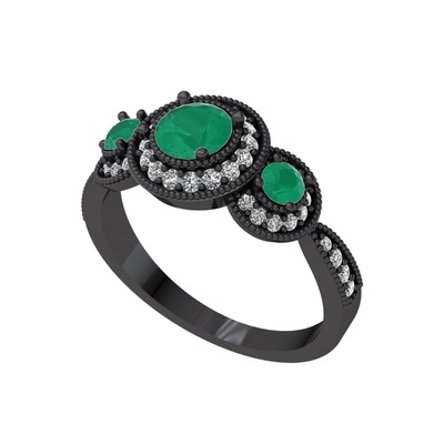 Kök zümrüt ve swarovski 925 ayar siyah rodyum kaplama gümüş yüzük
