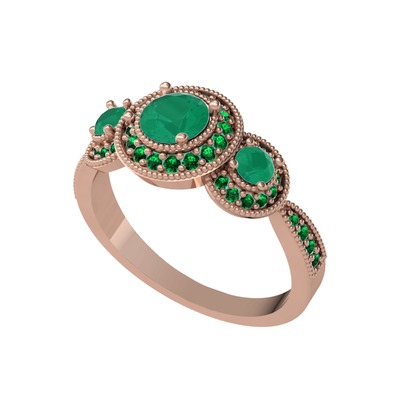 Kök zümrüt ve yeşil kuvars 14 ayar rose altın yüzük