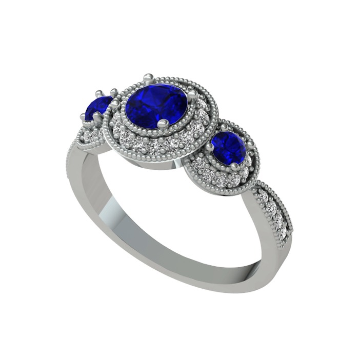 Lab safir ve beyaz zirkon 8 ayar beyaz altın yüzük
