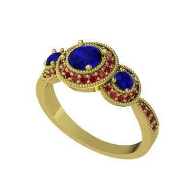 Lab safir ve garnet 925 ayar altın kaplama gümüş yüzük