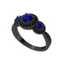 Lab safir ve siyah zirkon 925 ayar siyah rodyum kaplama gümüş yüzük