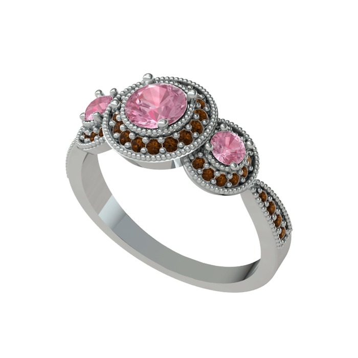Pembe kuvars ve dumanlı kuvars 8 ayar beyaz altın yüzük