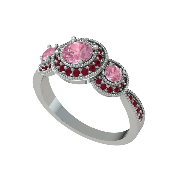 Pembe kuvars ve kök yakut 925 ayar gümüş yüzük