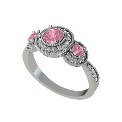 Pembe kuvars ve swarovski 18 ayar beyaz altın yüzük