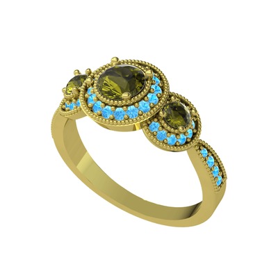 Peridot ve akuamarin 18 ayar altın yüzük
