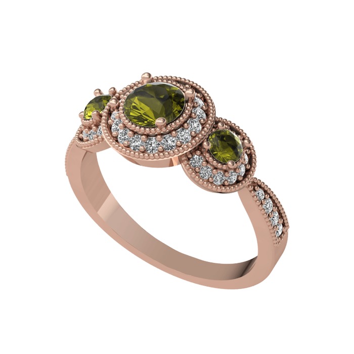 Peridot ve beyaz zirkon 18 ayar rose altın yüzük