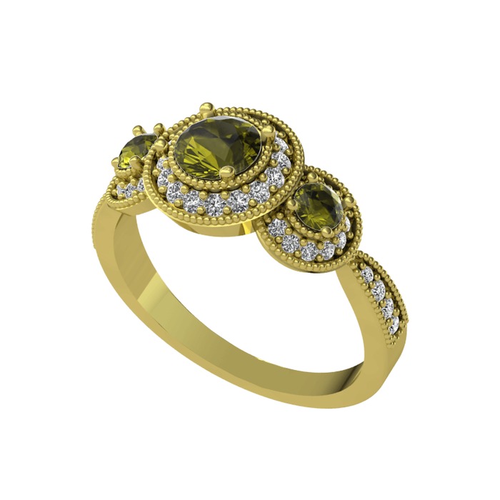 Peridot ve beyaz zirkon 925 ayar altın kaplama gümüş yüzük