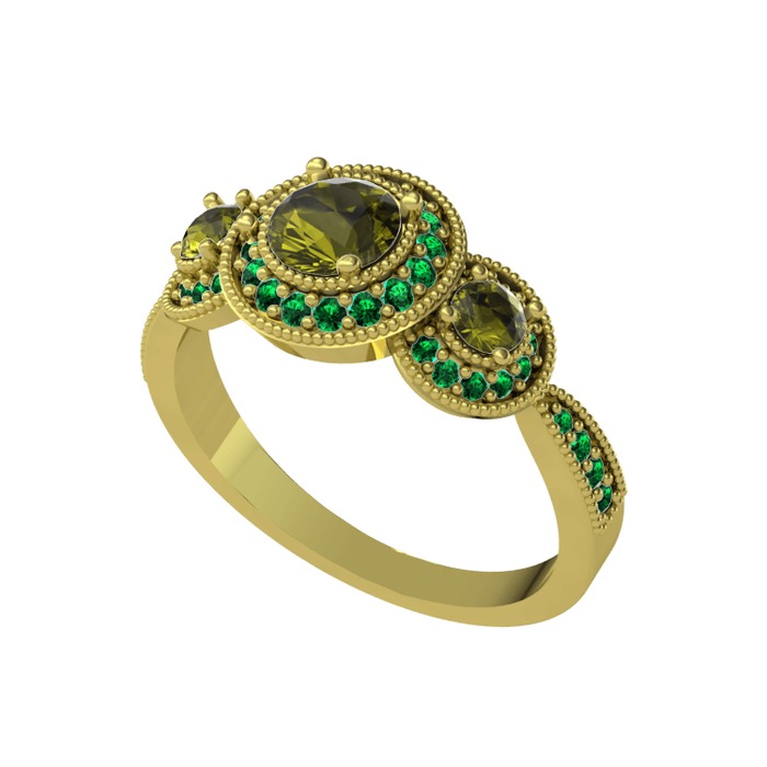 Peridot ve yeşil kuvars 14 ayar altın yüzük