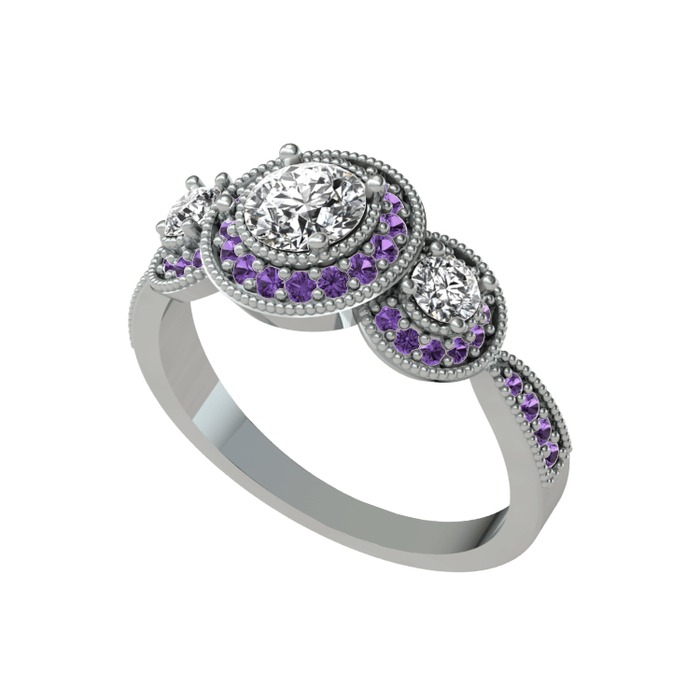 Pırlanta ve ametist 8 ayar beyaz altın yüzük (1.5 karat)