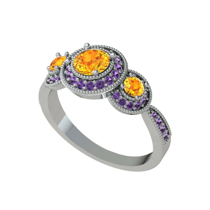 Sitrin ve ametist 18 ayar beyaz altın yüzük