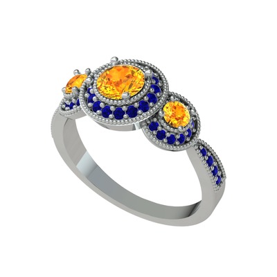 Sitrin ve lab safir 18 ayar beyaz altın yüzük