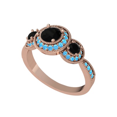 Siyah zirkon ve akuamarin 18 ayar rose altın yüzük