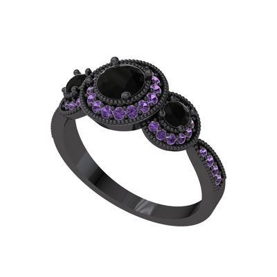 Siyah zirkon ve ametist 925 ayar siyah rodyum kaplama gümüş yüzük