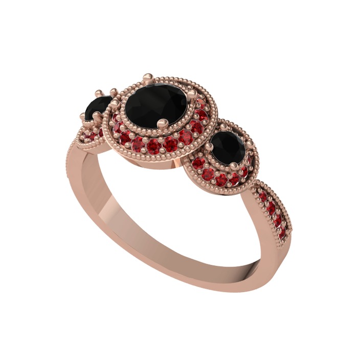 Siyah zirkon ve garnet 18 ayar rose altın yüzük