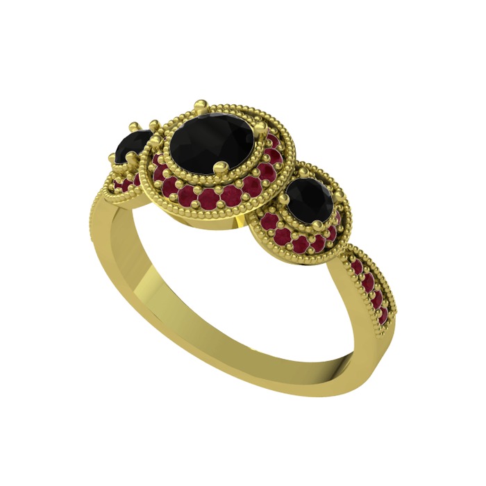 Siyah zirkon ve kök yakut 925 ayar altın kaplama gümüş yüzük