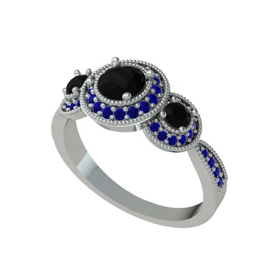 Siyah zirkon ve lab safir 925 ayar gümüş yüzük